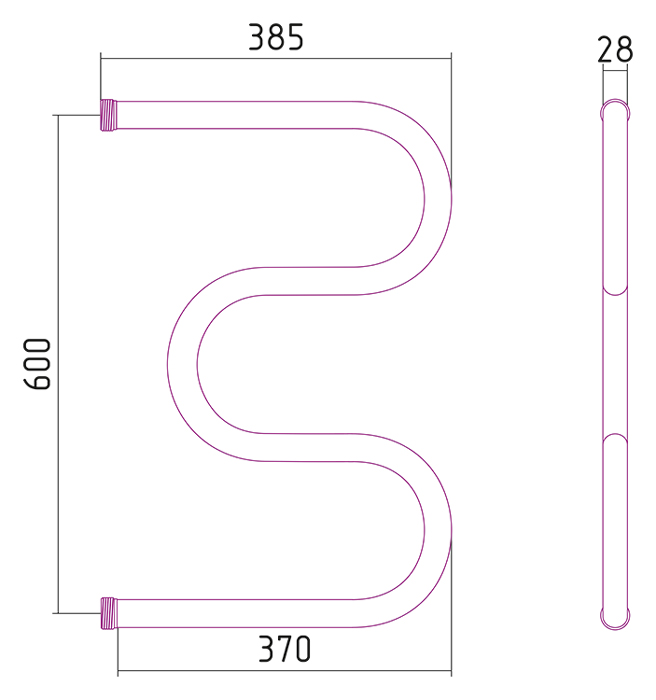 —Полотенцесушитель водяной Стилье М-образный 600*400 резьба-сгон 1"