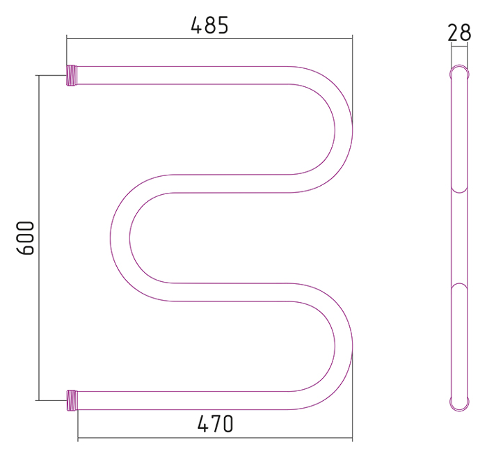 —Полотенцесушитель водяной Стилье М-образный 600*500 резьба-сгон 1"