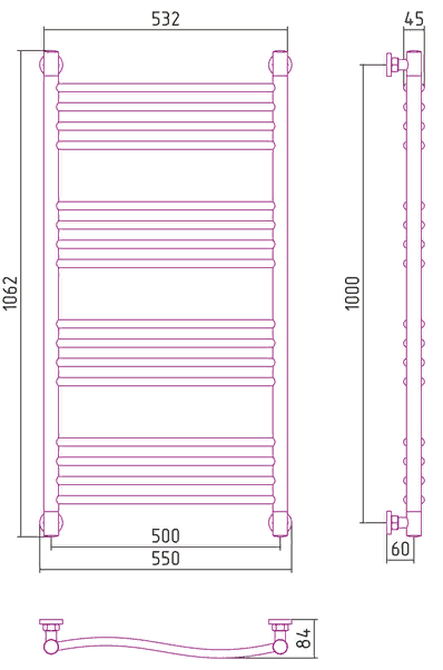 —Полотенцесушитель водяной Сунержа ФЛЮИД+ 1000х500