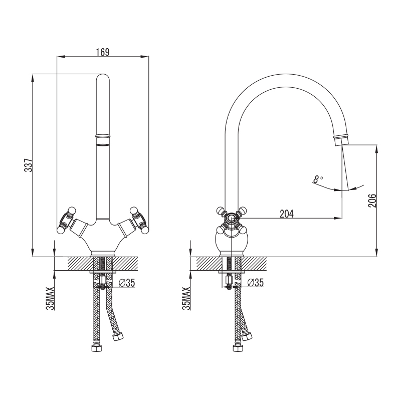 Высота излива, см