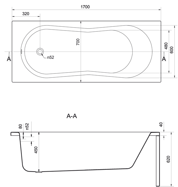 Ванна акриловая Cersanit NIKE 63347 170x70 см.