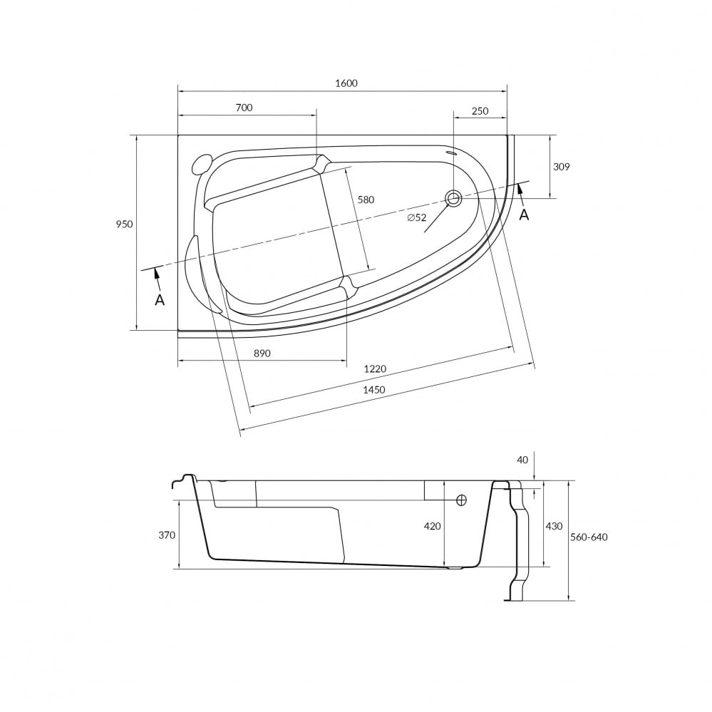 Ванна акриловая Cersanit JOANNA 63338 160x95 см. левая